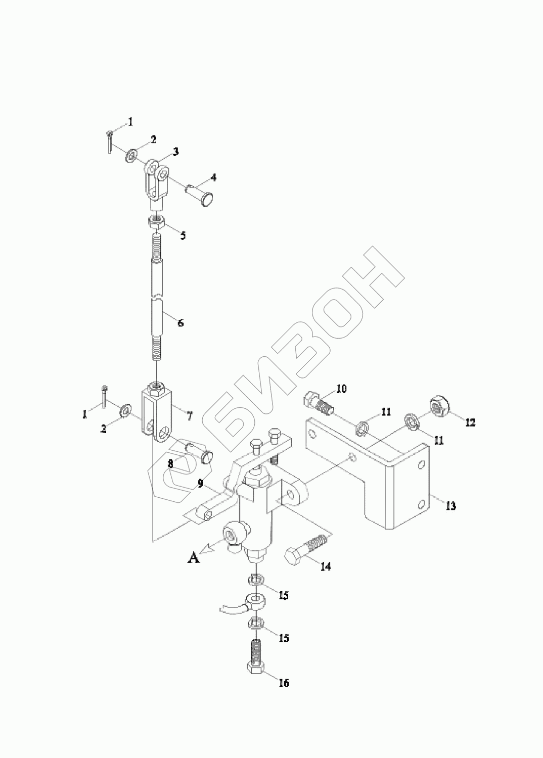 Графический каталог запасных частей к технике: LOVOL TD1SA904-029K. Кран тормозной