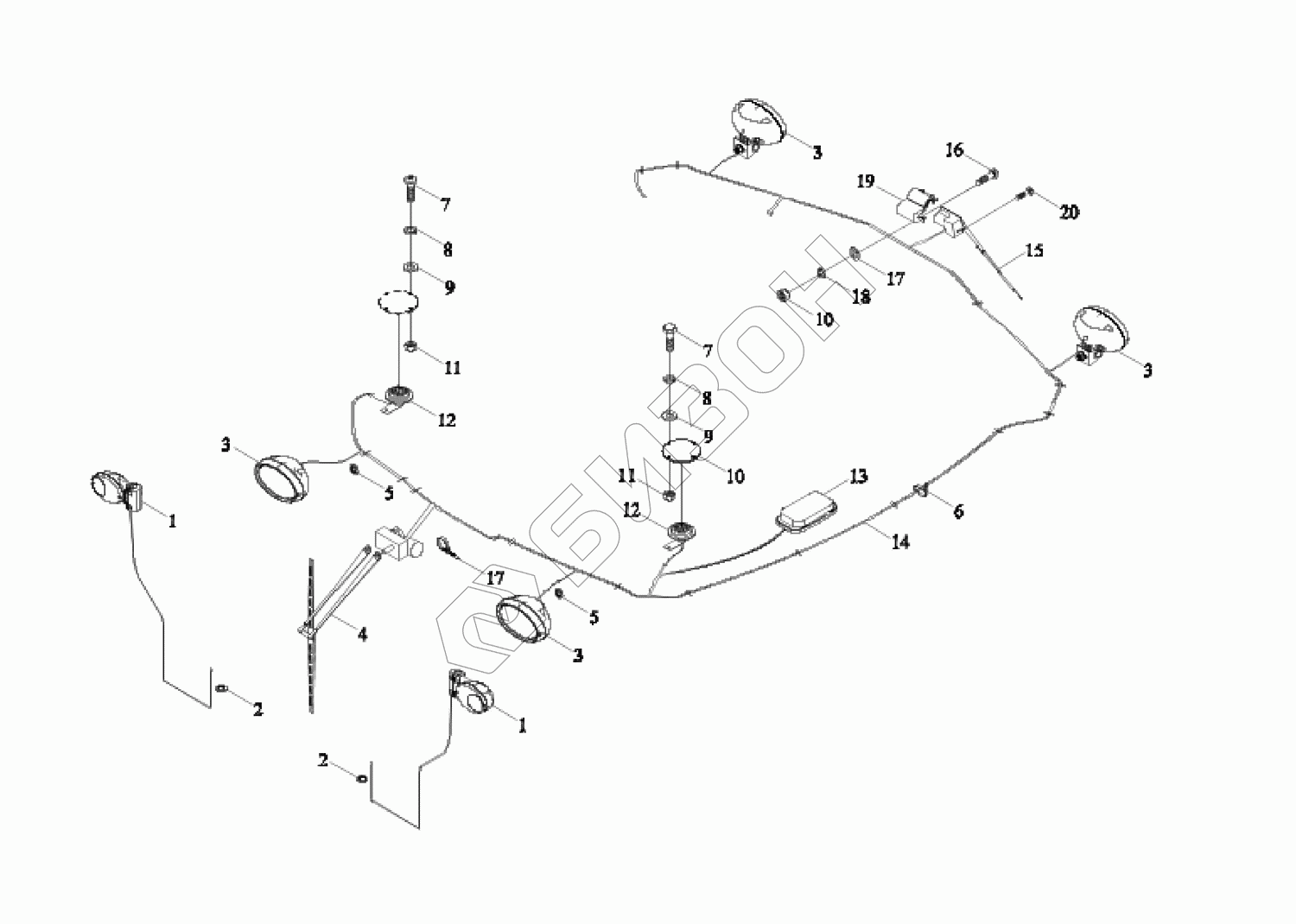 Графический каталог запасных частей к технике: LOVOL TD1SA904-029K. Монтажный блок жгута проводов верхнего освещения
