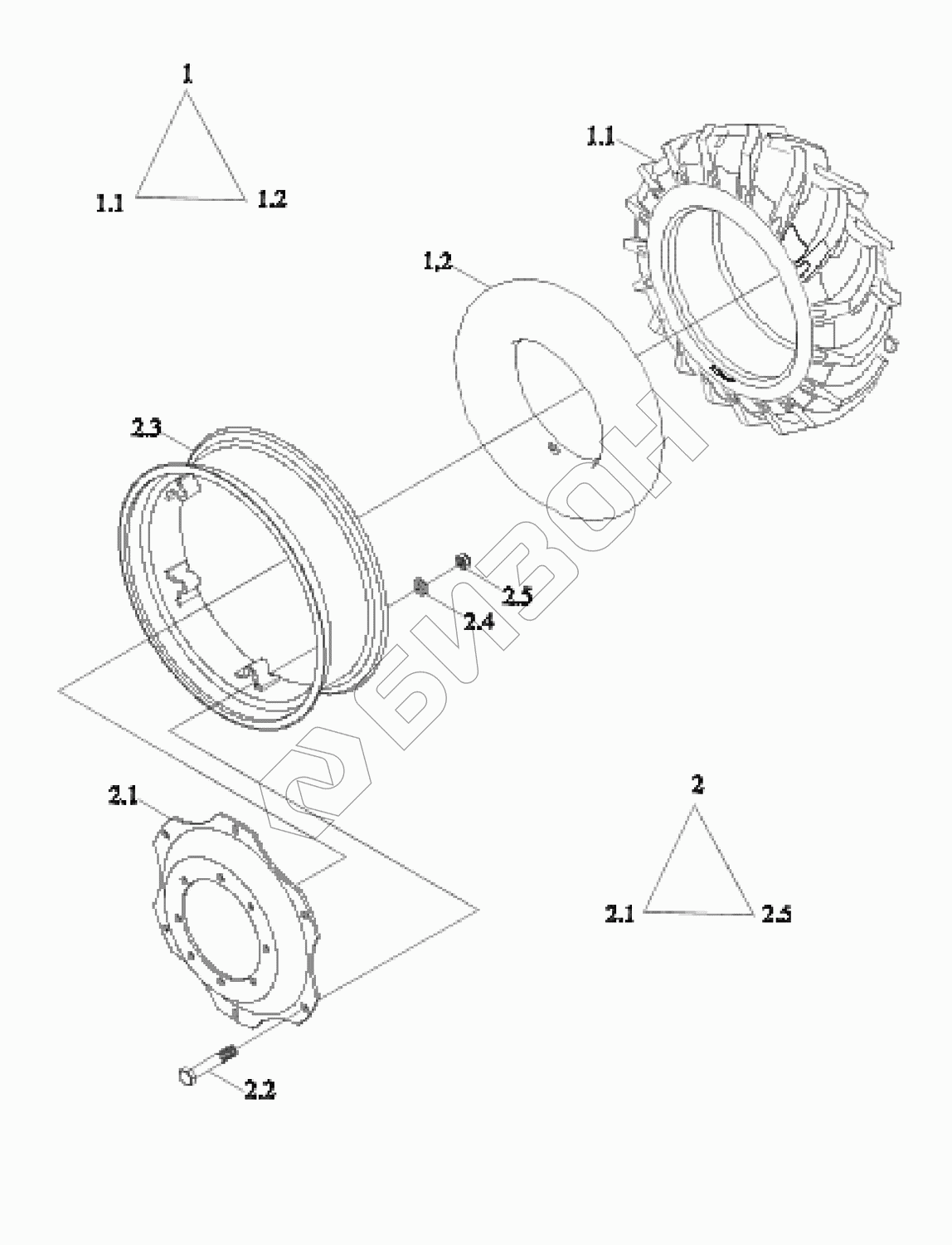 Графический каталог запасных частей к технике: LOVOL TD1SA904-029K. Переднее ведущее колесо