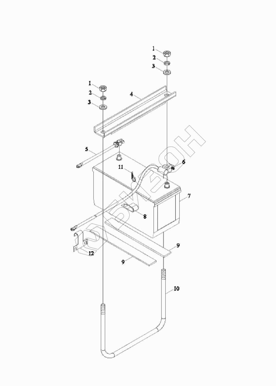 Графический каталог запасных частей к технике: LOVOL TD1SA904-029K. Установка аккумуляторов