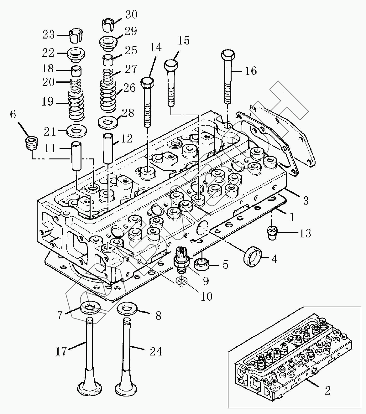 Графический каталог запасных частей к технике: LOVOL TD1SA904-029K. Головка блока цилиндров, клапана, пружины