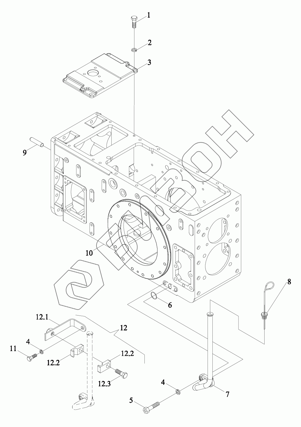 Графический каталог запасных частей к технике: LOVOL TD1SA904-029K. Картер заднего моста 1