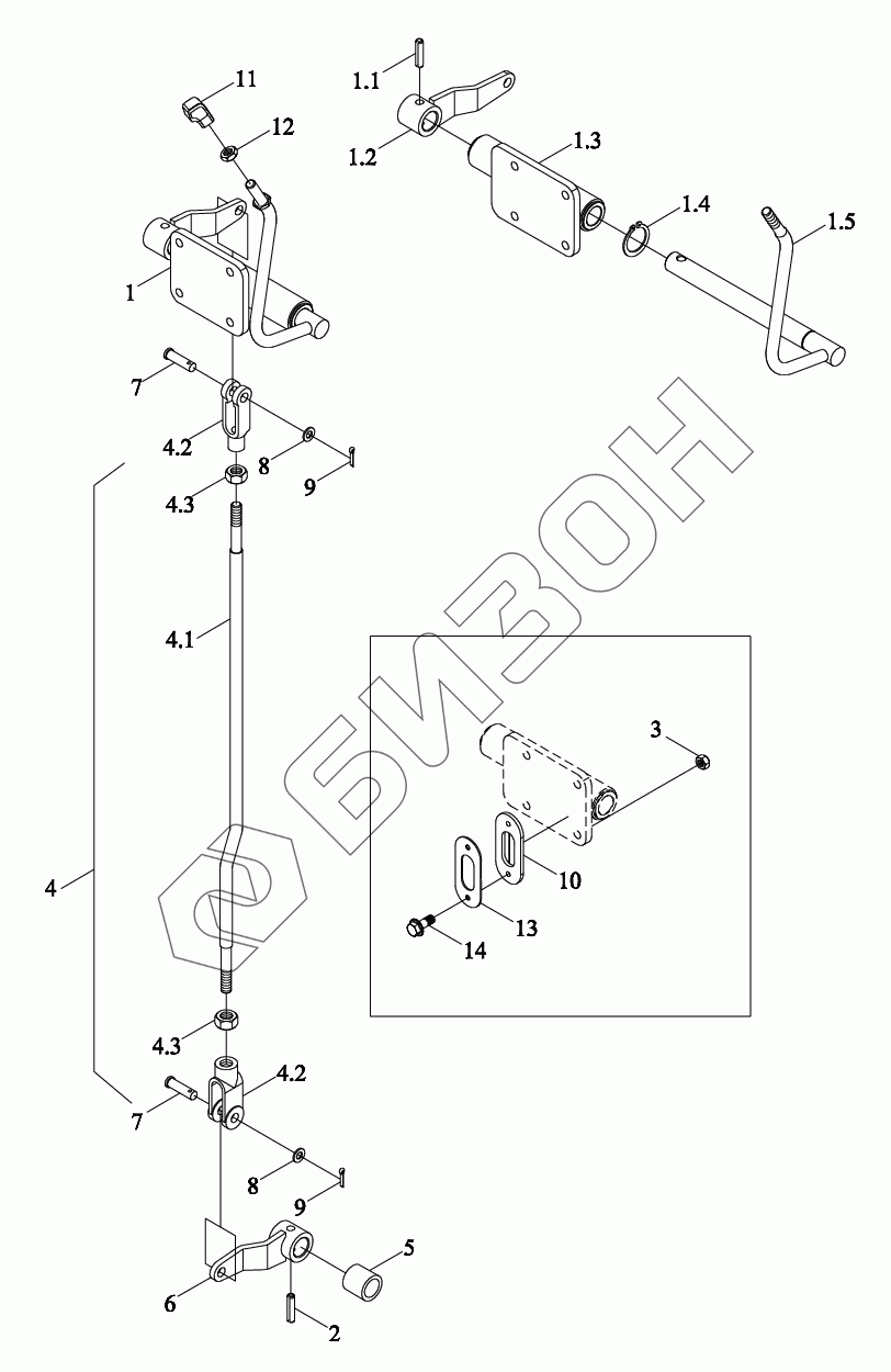 Графический каталог запасных частей к технике: LOVOL TD1SA904-029K. Механизм управления раздаточной коробкой