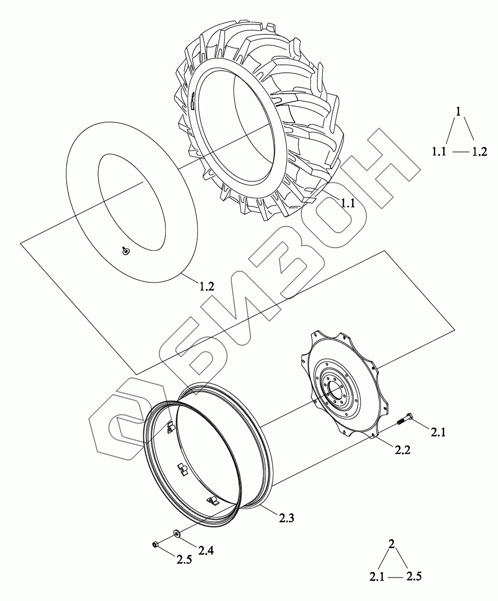 Графический каталог запасных частей к технике: LOVOL TD1SA904-029K. Заднее колесо