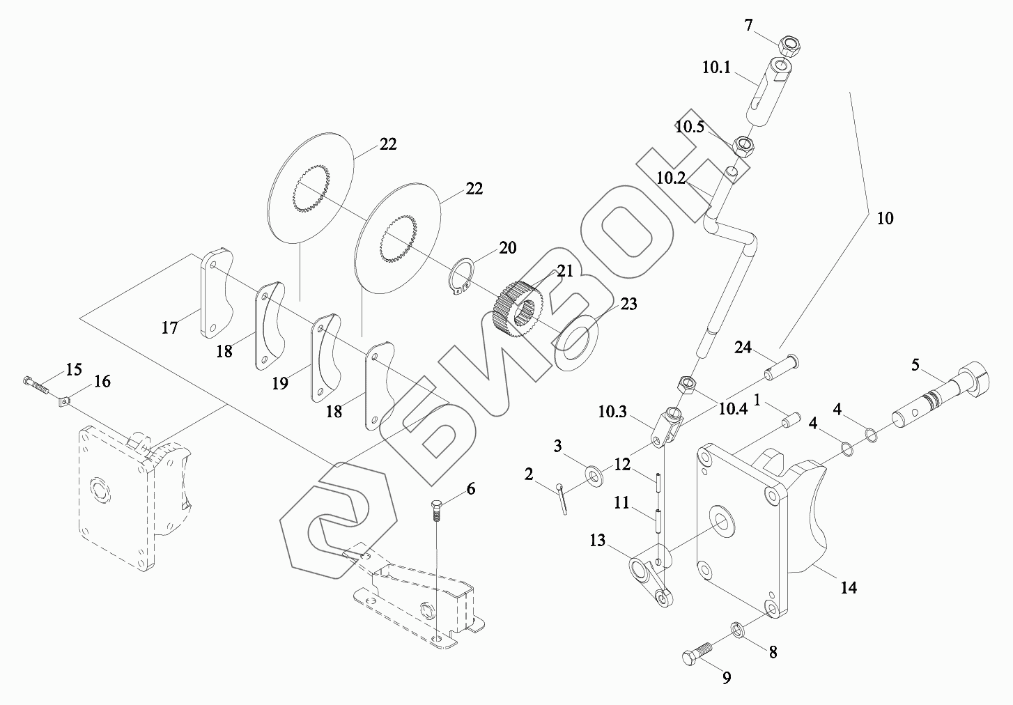 Графический каталог запасных частей к технике: LOVOL TD1SA904-029K. Механизм управления стояночным тормозом