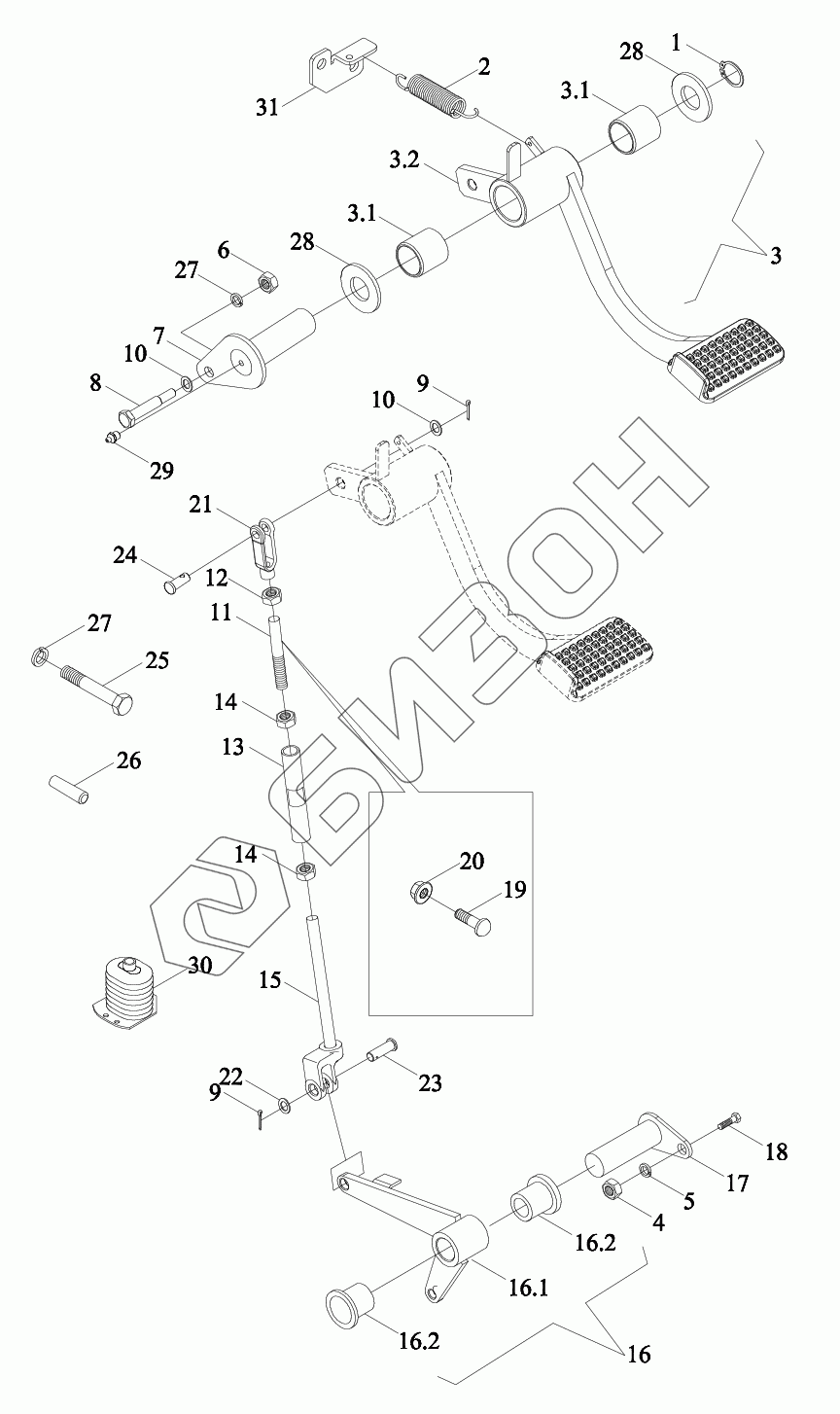 Графический каталог запасных частей к технике: LOVOL TD1SA904-029K. Механизм управления сцеплением 3
