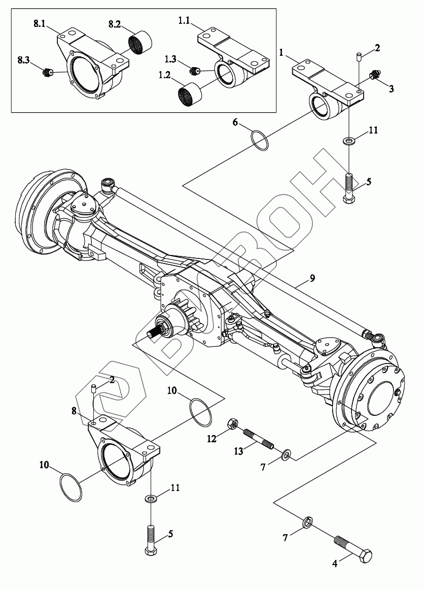 Графический каталог запасных частей к технике: LOVOL TD1SA904-029K. Передний ведущий мост