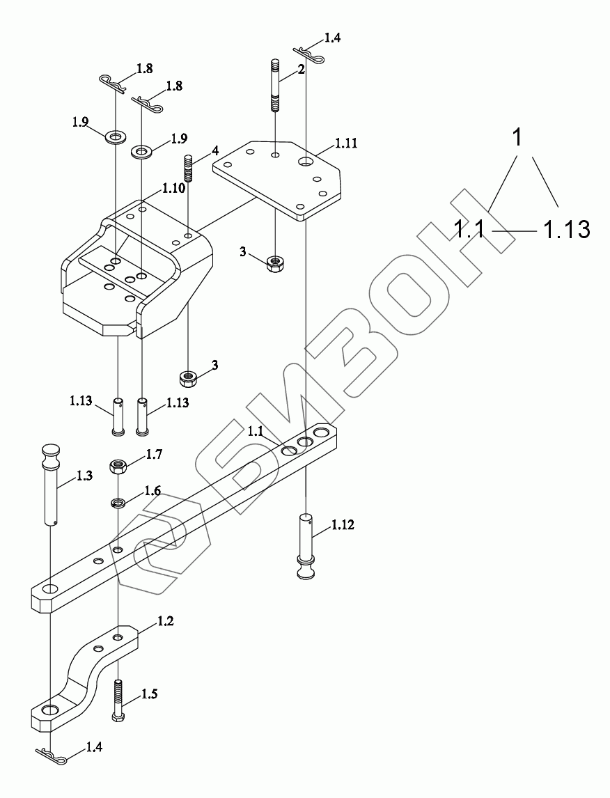 Графический каталог запасных частей к технике: LOVOL TD1SA904-029K. Тяговое устройство