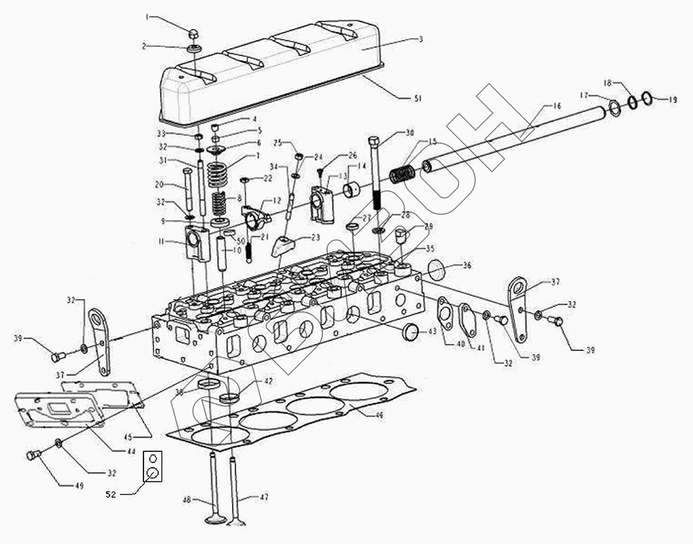 Графический каталог запасных частей к технике: LOVOL TD1SA904-049K. Головка блока цилиндров
