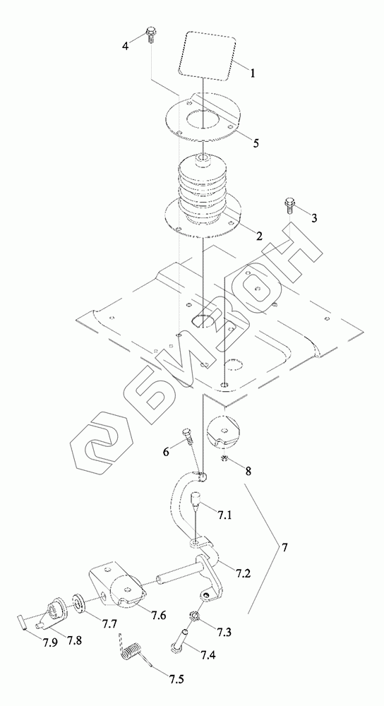 Графический каталог запасных частей к технике: LOVOL TD1SA904-049K. Механизм управления ножным акселератором