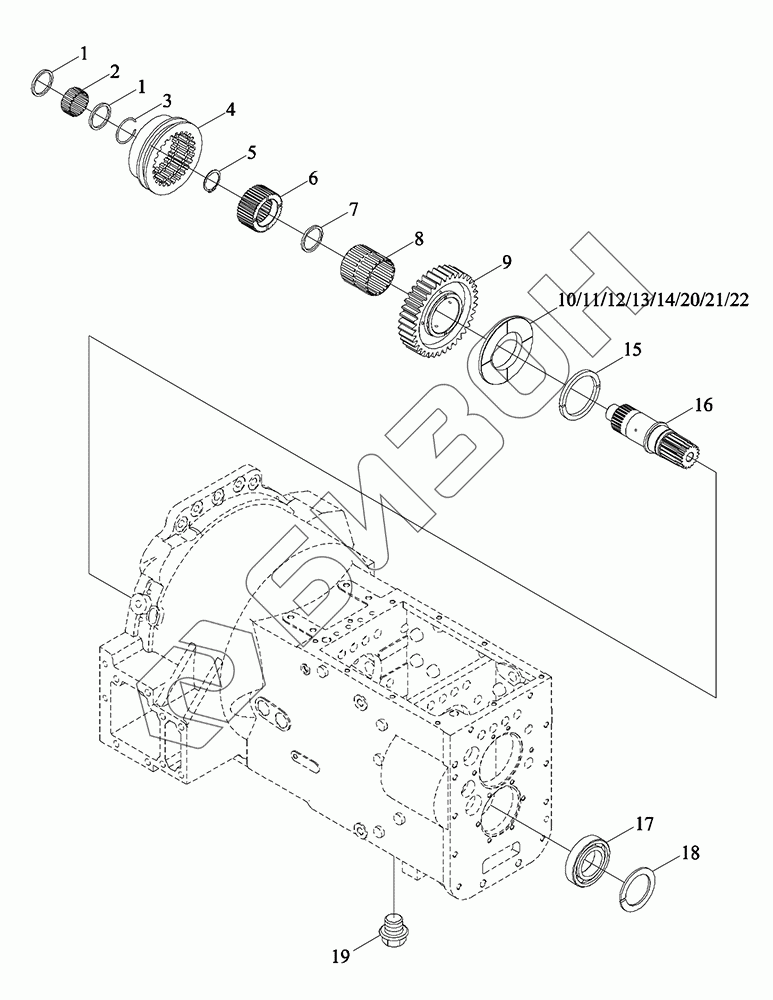 Графический каталог запасных частей к технике: LOVOL TD1SA904-049K. Основная коробка передач 4
