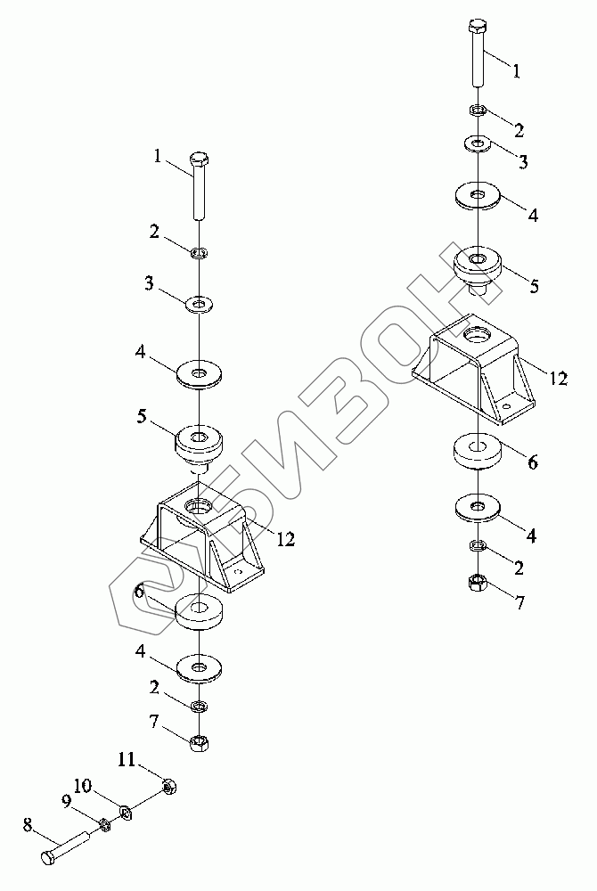 Графический каталог запасных частей к технике: LOVOL TD1SA904-050K. Кронштейн кабины задний