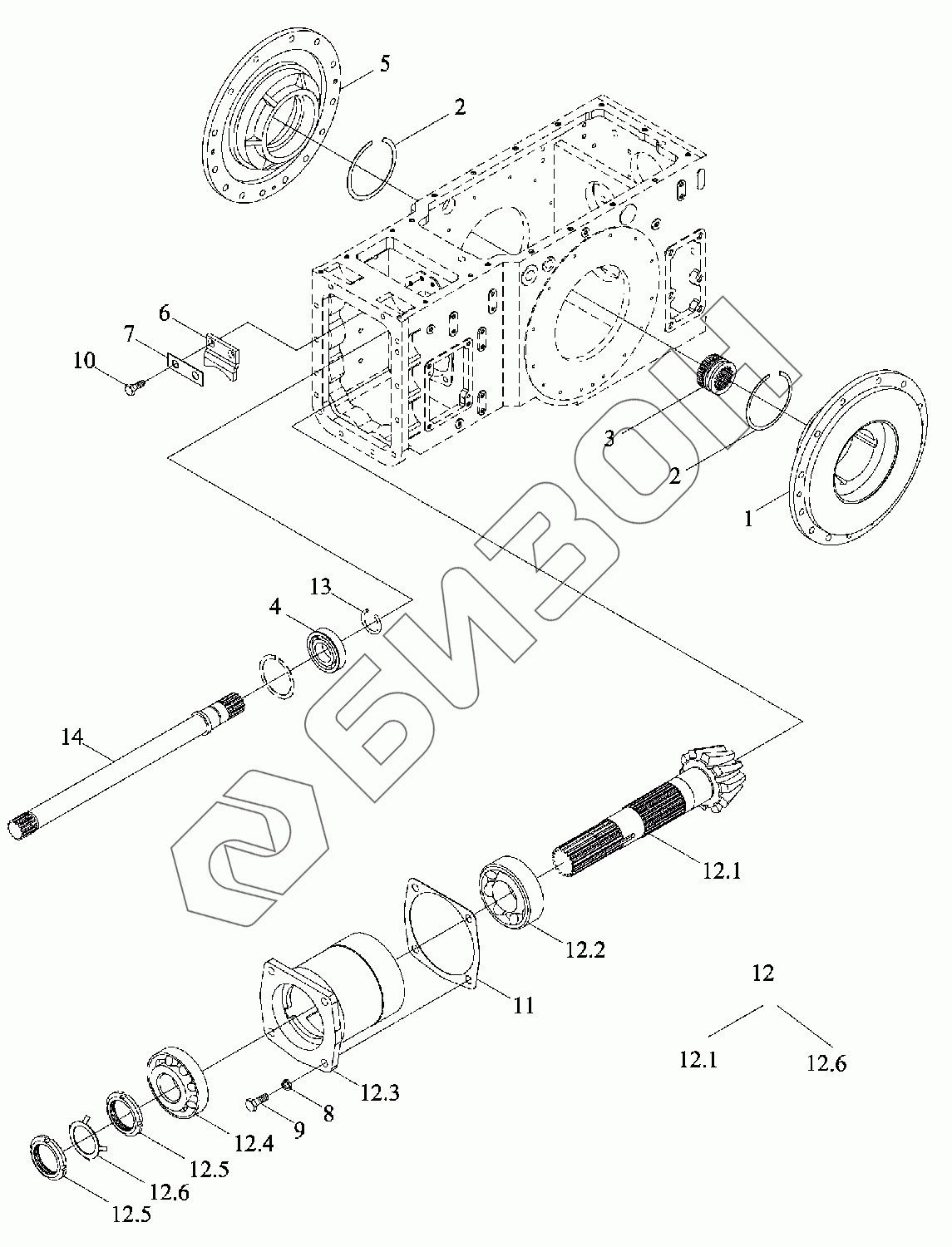 Графический каталог запасных частей к технике: LOVOL TD1SA904-050K. Центральная передача заднего моста 1