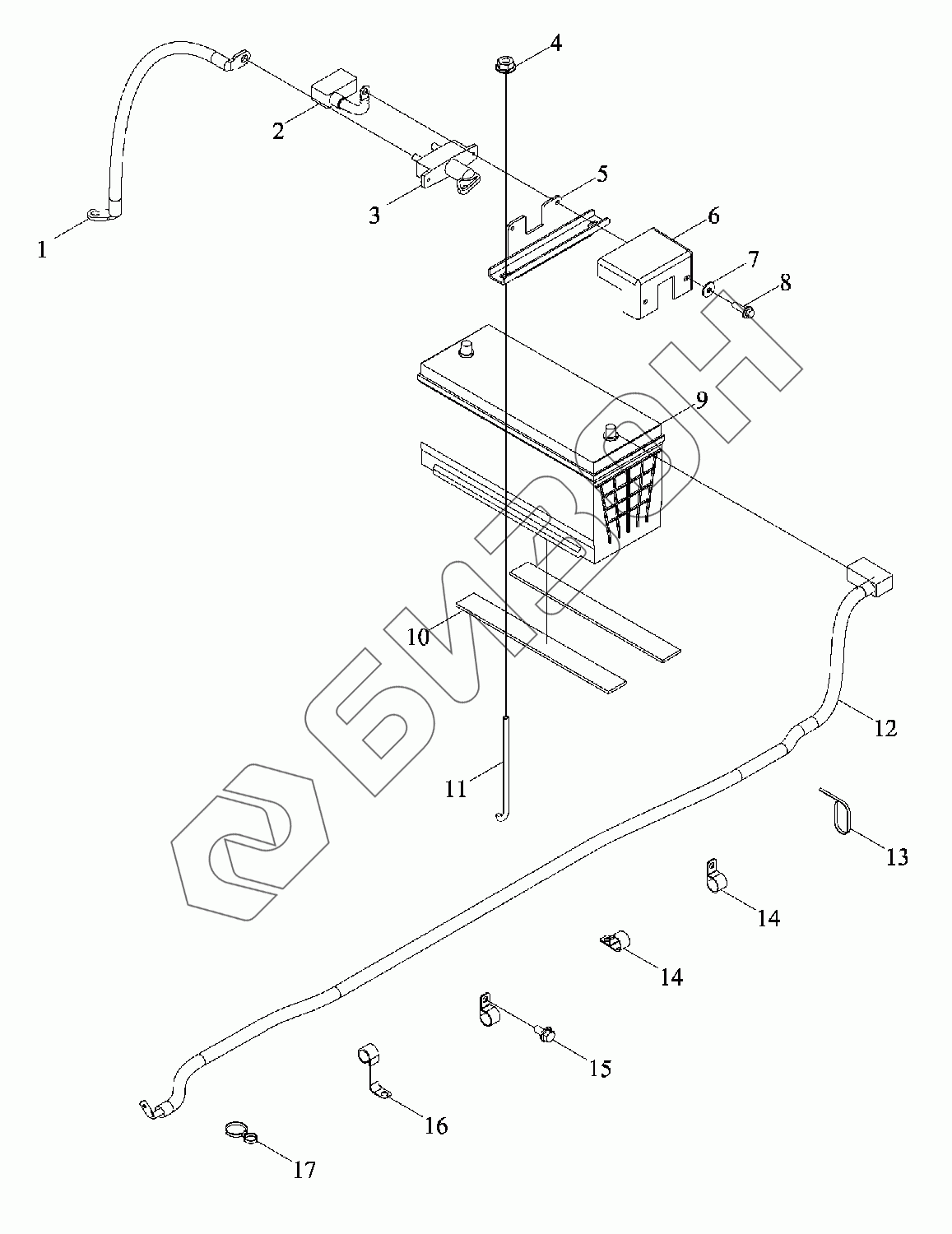 Графический каталог запасных частей к технике: LOVOL TD1SA904-050K. Установка аккумуляторов