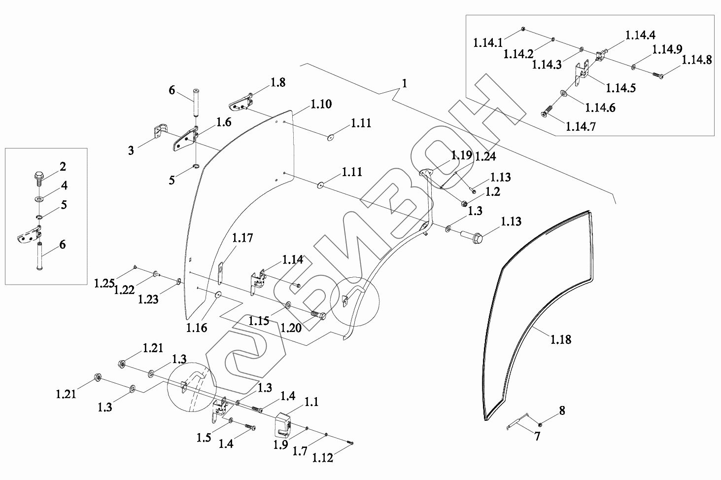 Графический каталог запасных частей к технике: LOVOL TD1SA904-050K. Кабина 8