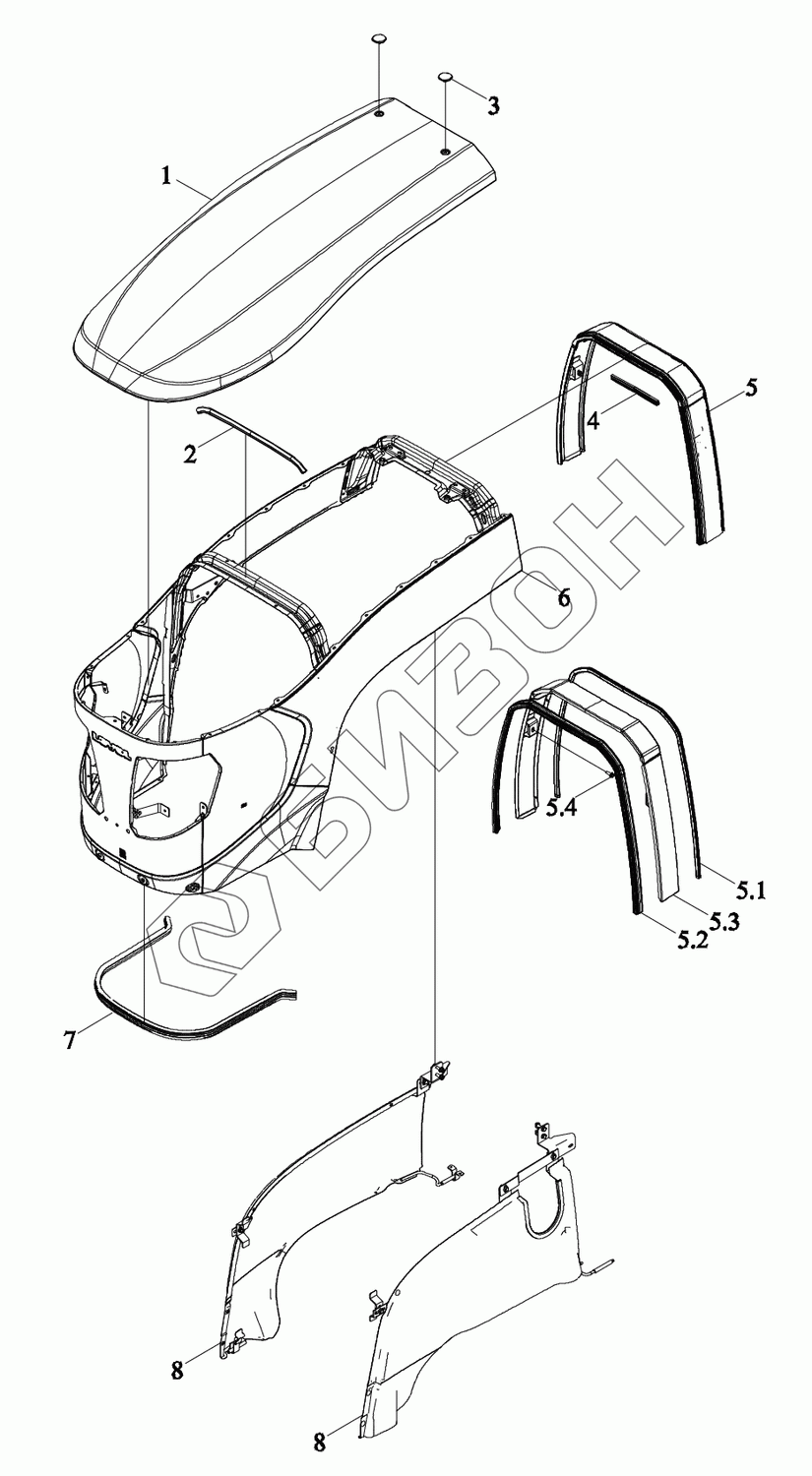 Графический каталог запасных частей к технике: LOVOL TD1SA904-050K. Капот 1