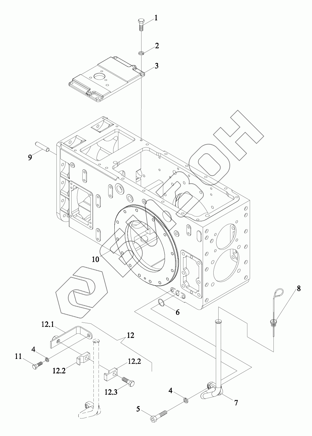 Графический каталог запасных частей к технике: LOVOL TD1SA904-050K. Картер заднего моста 1