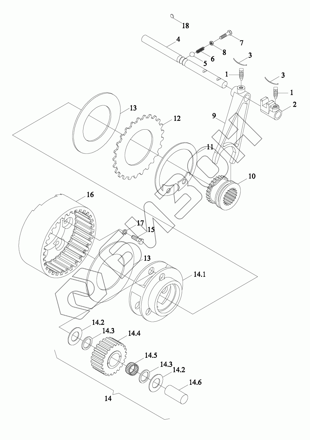 Графический каталог запасных частей к технике: LOVOL TD1SA904-050K. Механизм управления ползучей передачей