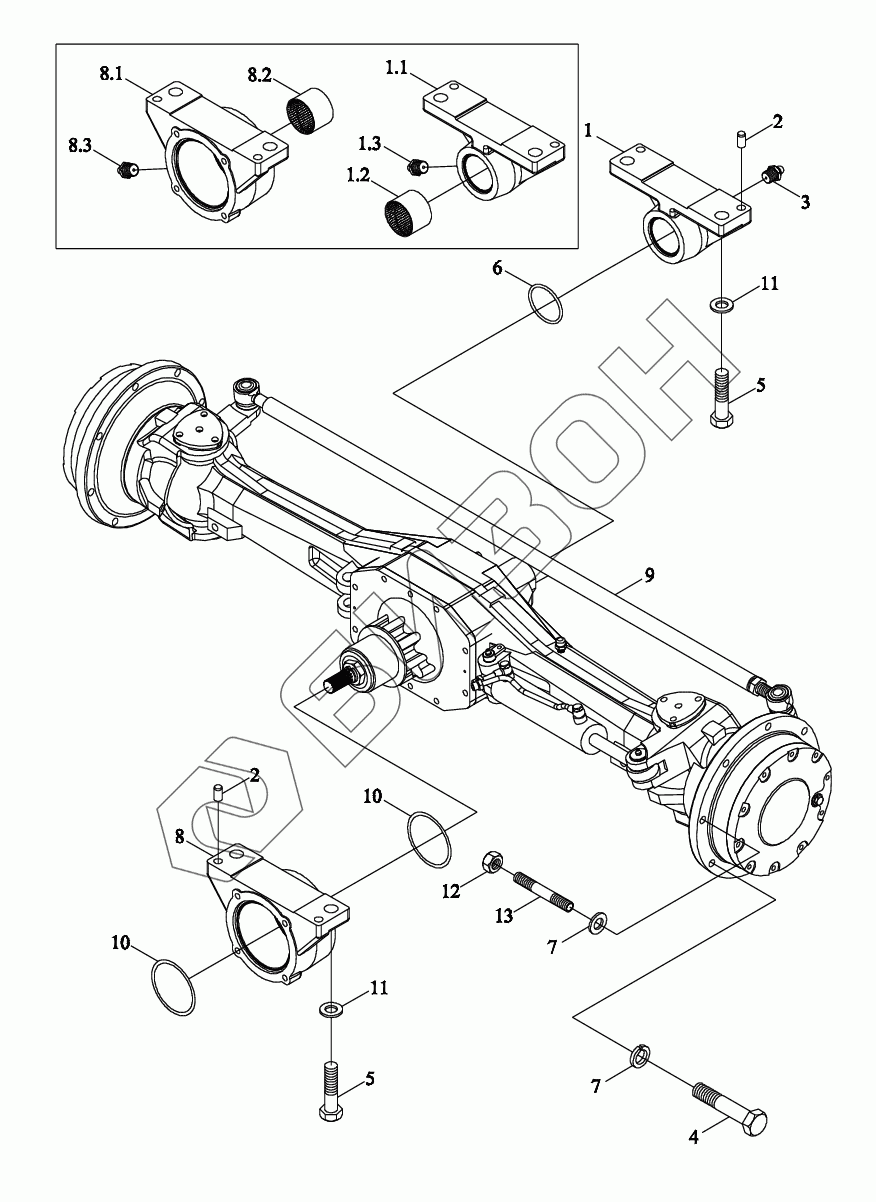 Графический каталог запасных частей к технике: LOVOL TD1SA904-050K. Передний ведущий мост 1