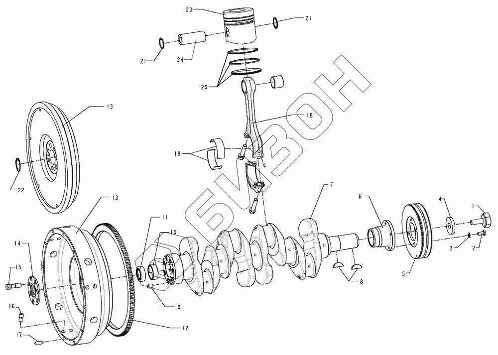 | 12 | R040102-002 | Венец маховика зубчатый |