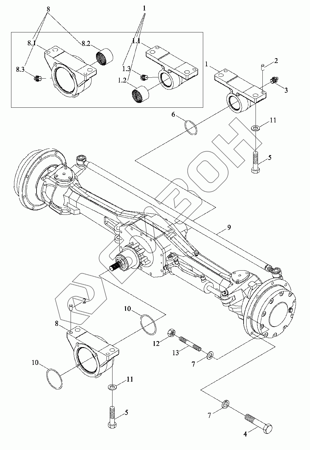 Графический каталог запасных частей к технике: LOVOL TD1SA904-050K. Передний ведущий мост 1