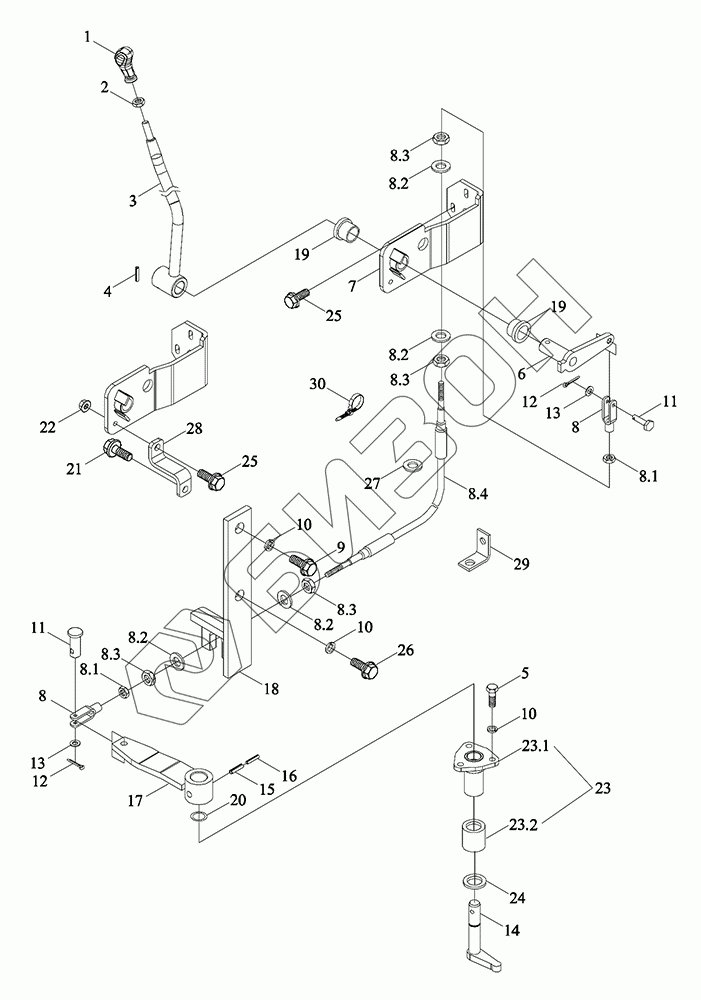 Графический каталог запасных частей к технике: LOVOL TD1SA904-050K. Боковой механизм управления