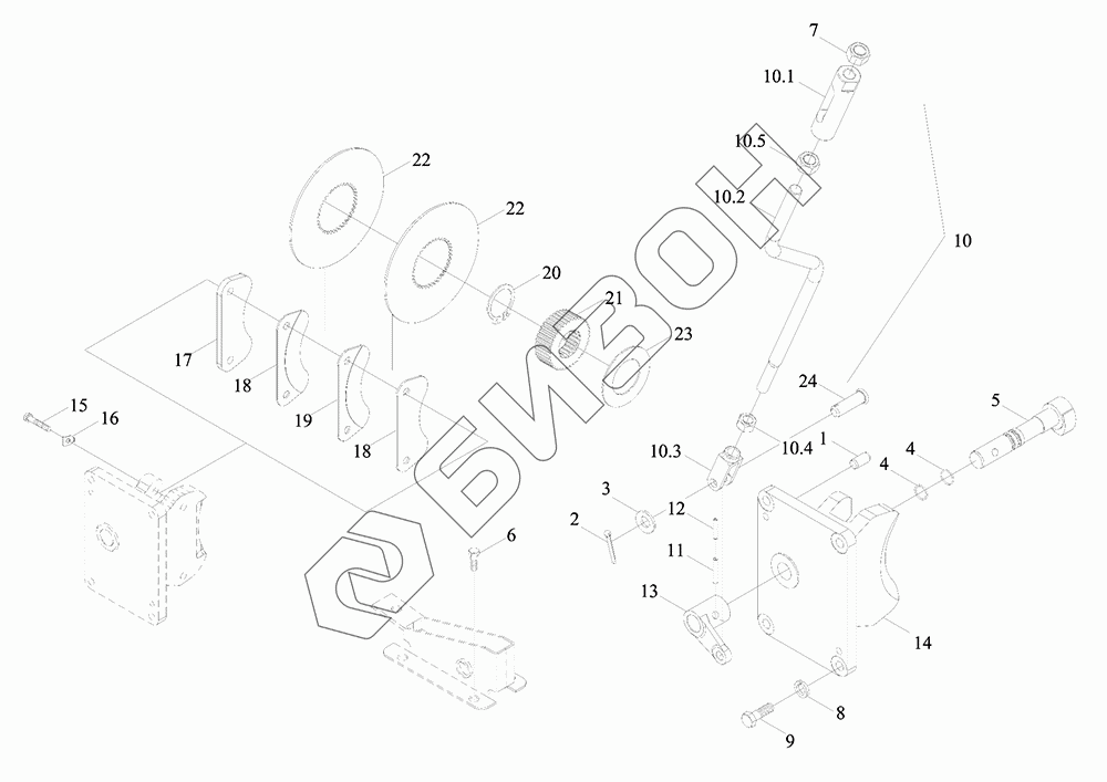 Графический каталог запасных частей к технике: LOVOL TD1SA904-050K. Механизм управления стояночным тормозом 1