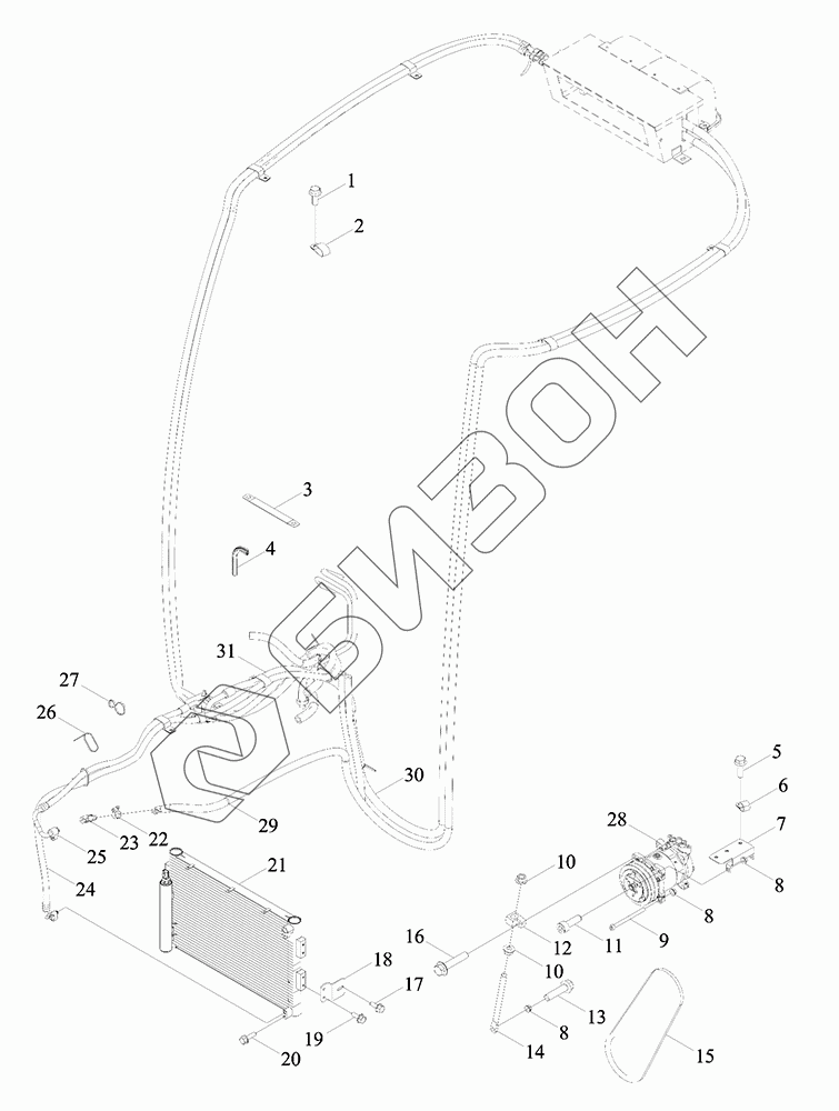 Графический каталог запасных частей к технике: LOVOL TD1SA904-050K. Система кондиционирования воздуха - двигатель