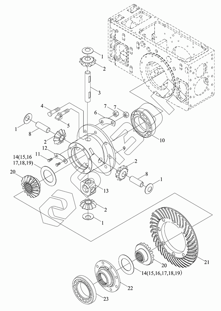 Графический каталог запасных частей к технике: LOVOL TD1SA904-050K. Центральная передача заднего моста 2
