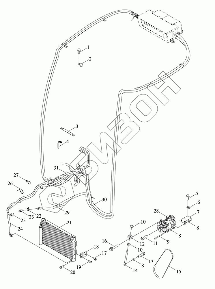 Графический каталог запасных частей к технике: LOVOL TD1SA904-050K. Система кондиционирования воздуха - двигатель