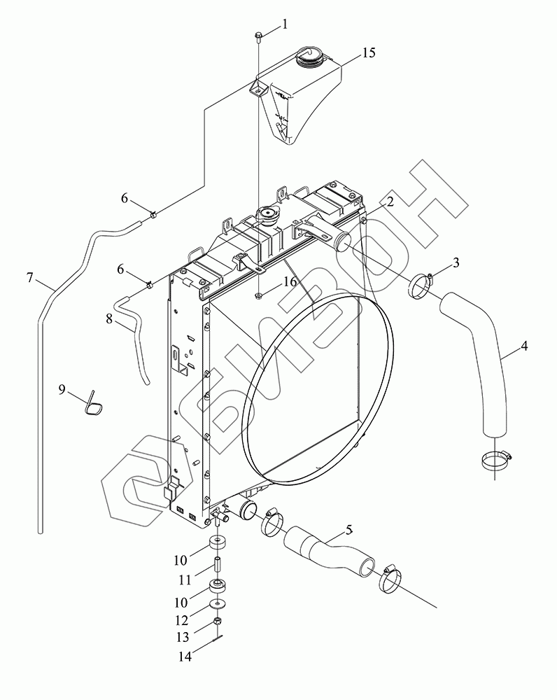 Графический каталог запасных частей к технике: LOVOL TD1SA904-050K. Радиатор