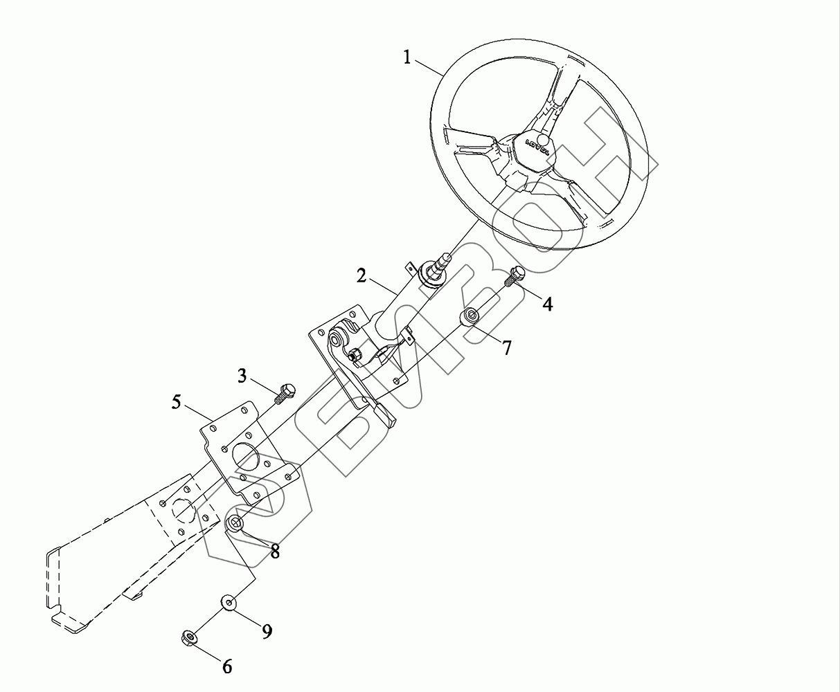 Графический каталог запасных частей к технике: LOVOL TD1SA904-050K. Рулевое колесо и рулевая колонка