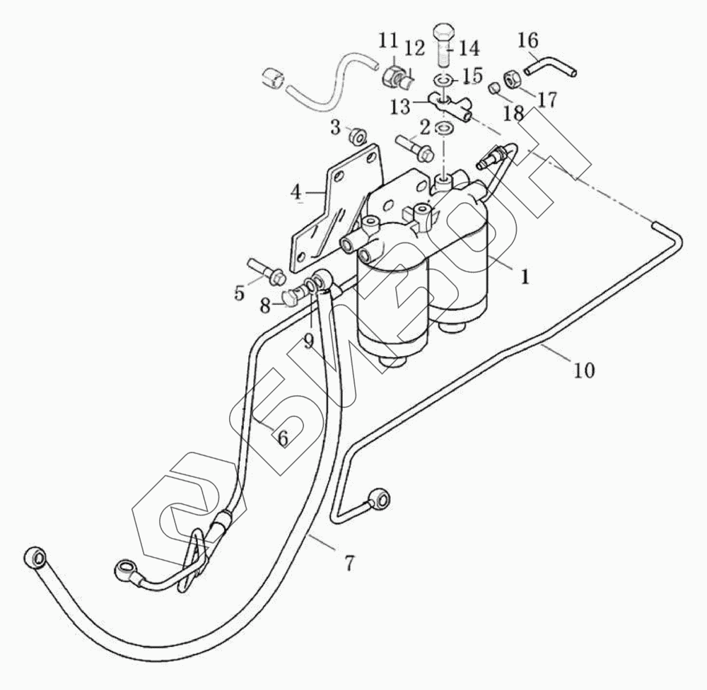Графический каталог запасных частей к технике: LOVOL TD2SA1304-007K. Фильтр топливный