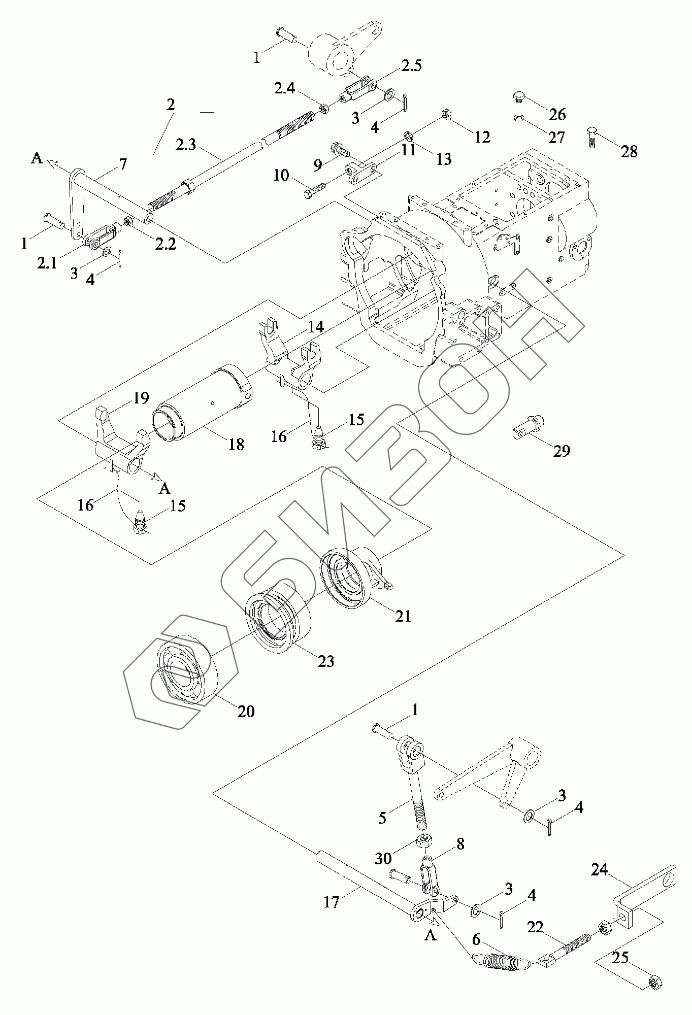Графический каталог запасных частей к технике: LOVOL TD2SA1304-007K. Механизм управления сцеплением 2