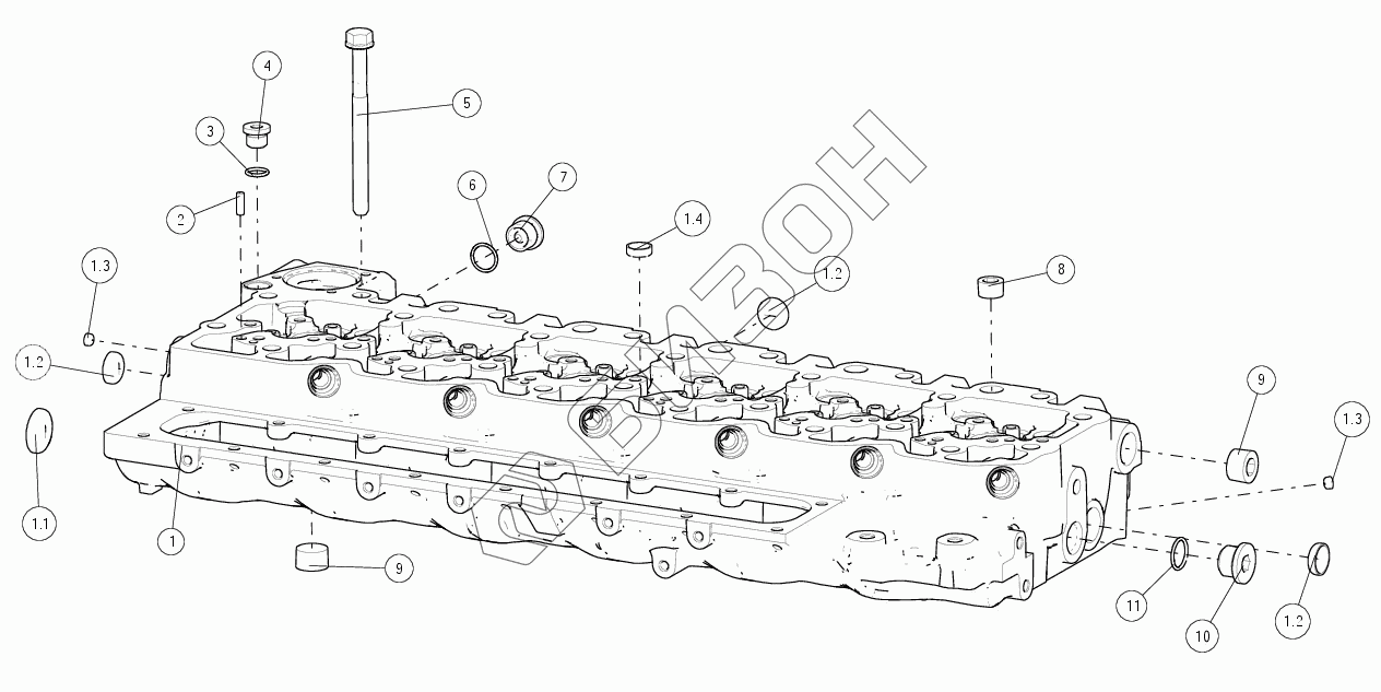 Графический каталог запасных частей к технике: LOVOL TD2SA1304-014K. Головка блока цилиндров