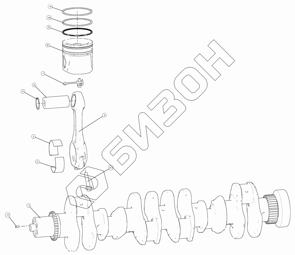 Графический каталог запасных частей к технике: LOVOL TD2SA1304-014K. Коленчатый вал, поршень, шатун