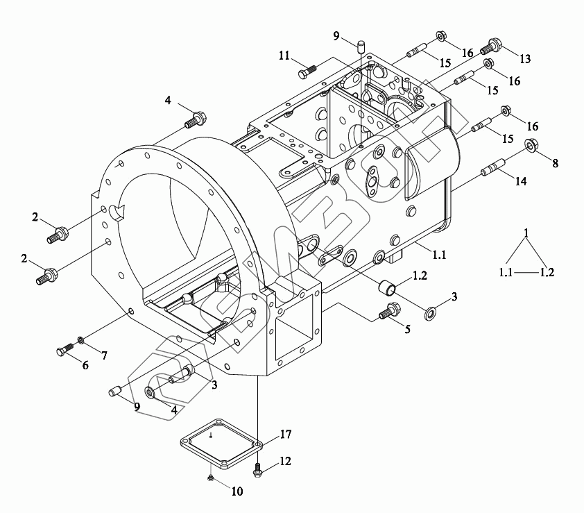 Графический каталог запасных частей к технике: LOVOL TD2SA1304-014K. Корпус коробки скоростей