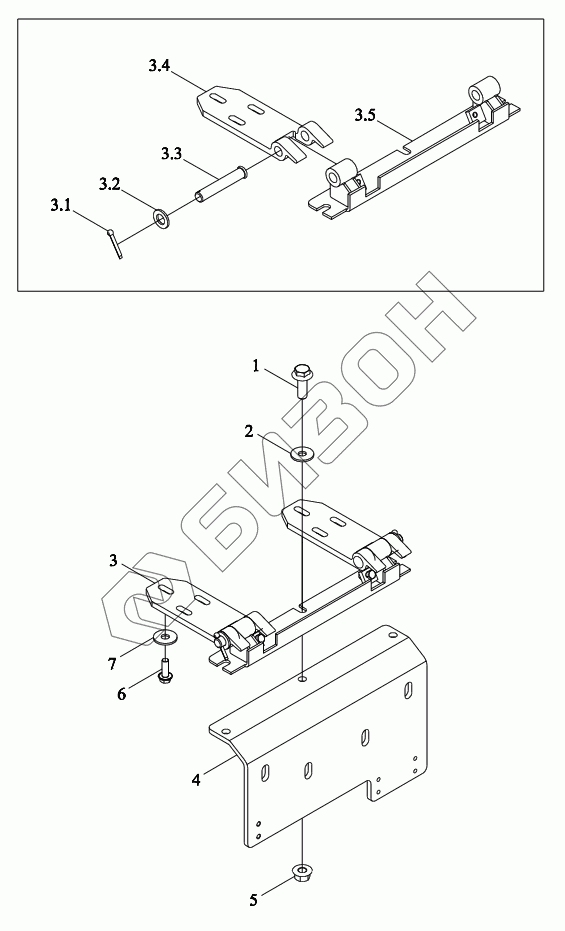 Графический каталог запасных частей к технике: LOVOL TD2SA1304-014K. Кронштейн капота