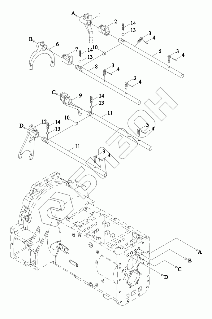 | 8 | TC05373060011 | Вал вилки переключения передач III-IV |