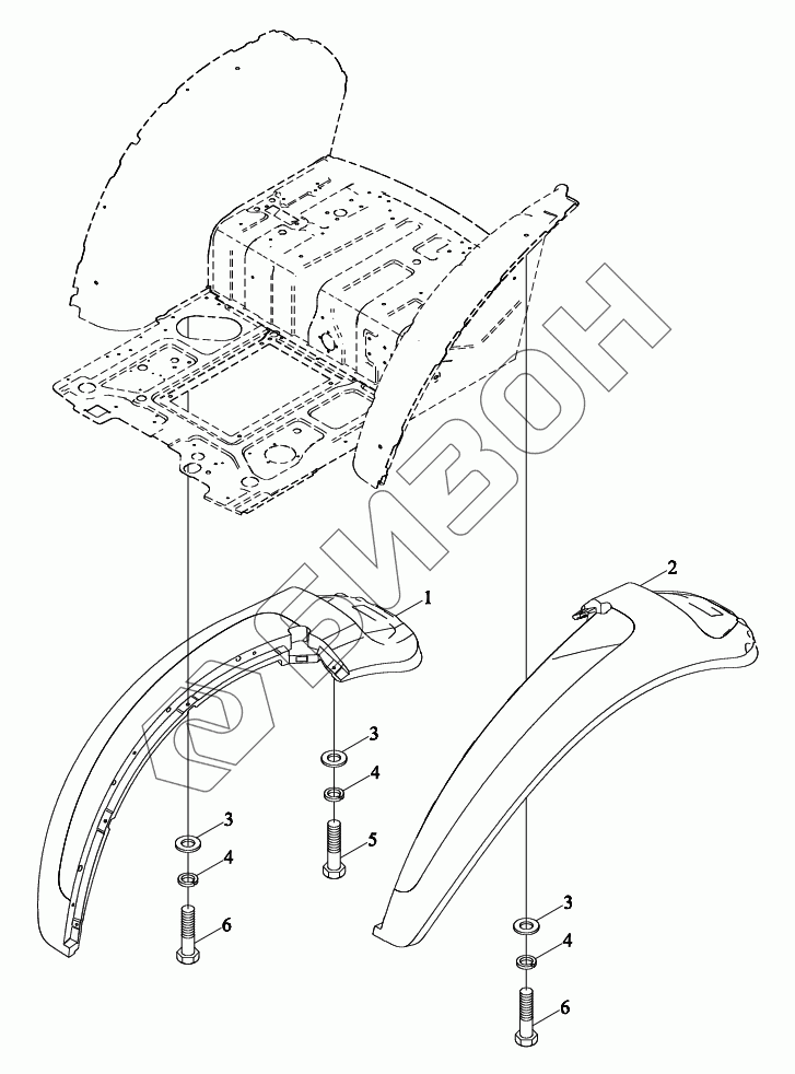 Графический каталог запасных частей к технике: LOVOL TD2SA1304-014K. Молдинг заднего брызговика