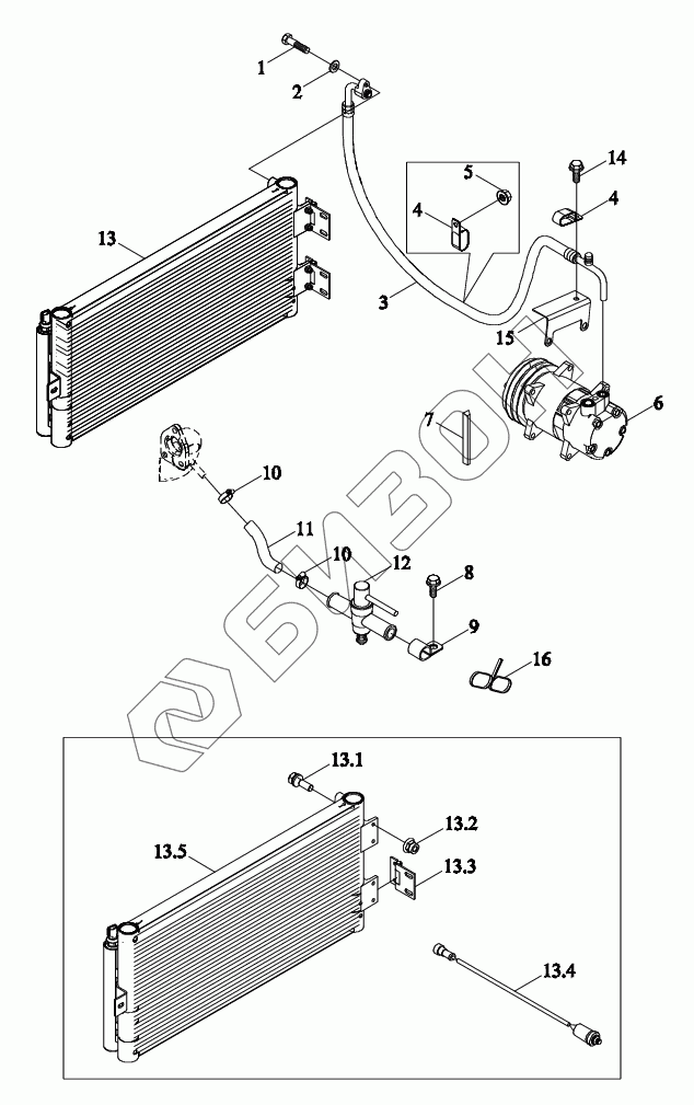 Графический каталог запасных частей к технике: LOVOL TD2SA1304-014K. Система кондиционирования воздуха - двигатель