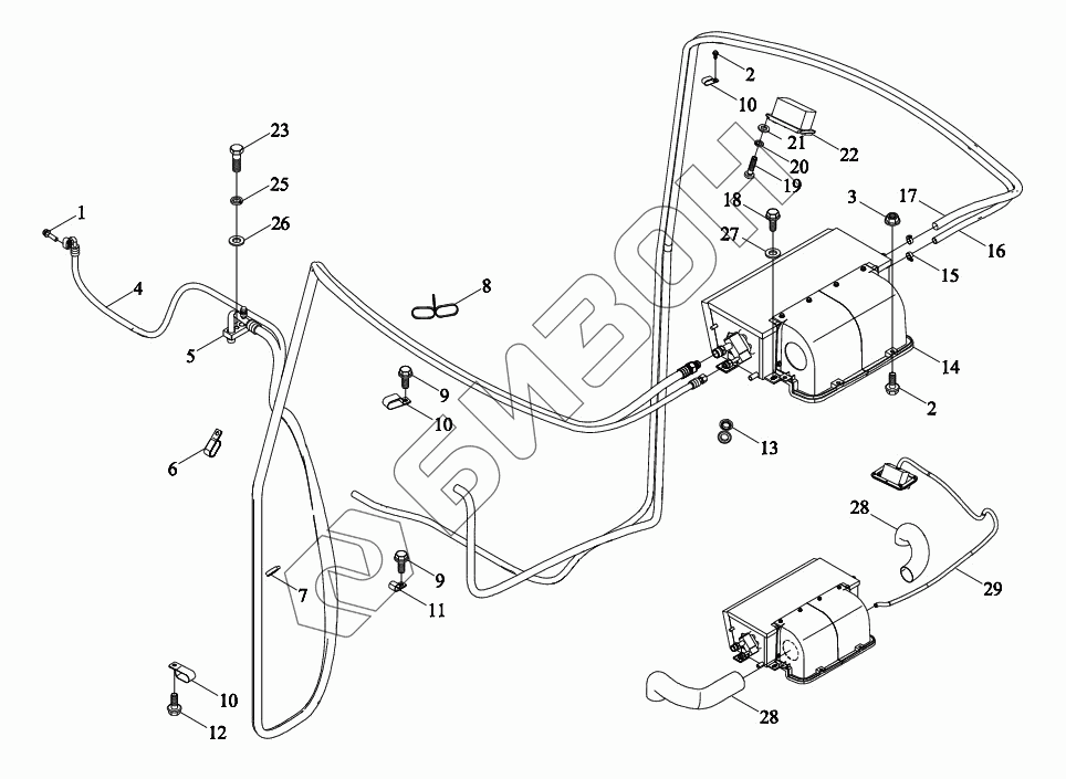 Графический каталог запасных частей к технике: LOVOL TD2SA1304-014K. Система кондиционирования воздуха - кабина 1
