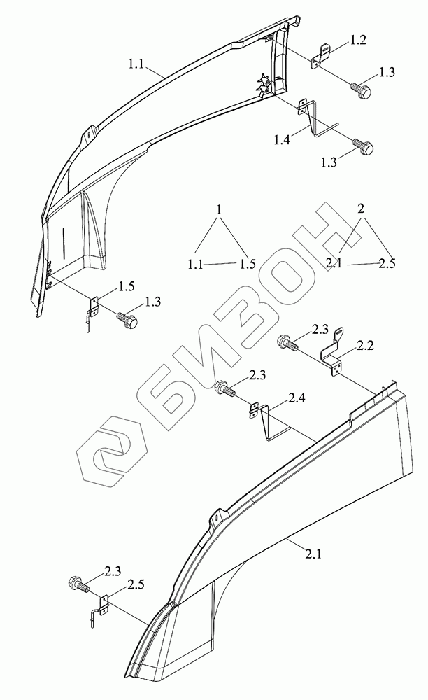 Графический каталог запасных частей к технике: LOVOL TD2SA1304-014K. Боковины