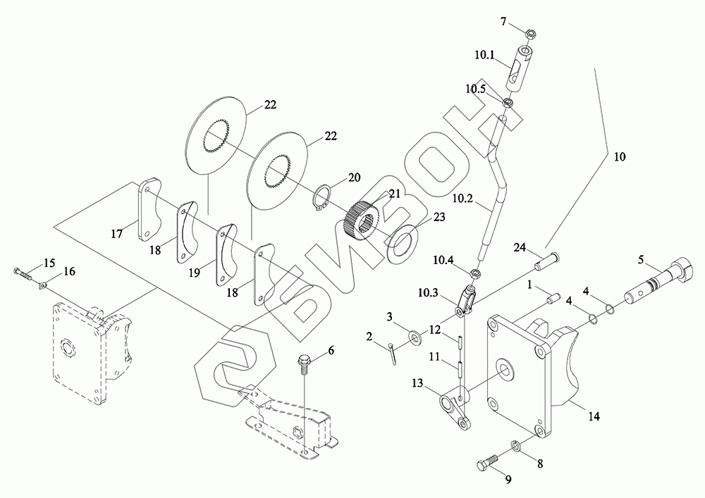 Графический каталог запасных частей к технике: LOVOL TD2SA1304-014K. Механизм управления стояночным тормозом