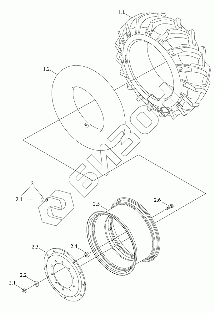 Графический каталог запасных частей к технике: LOVOL TD2SA1304-014K. Переднее ведущее колесо в сборе