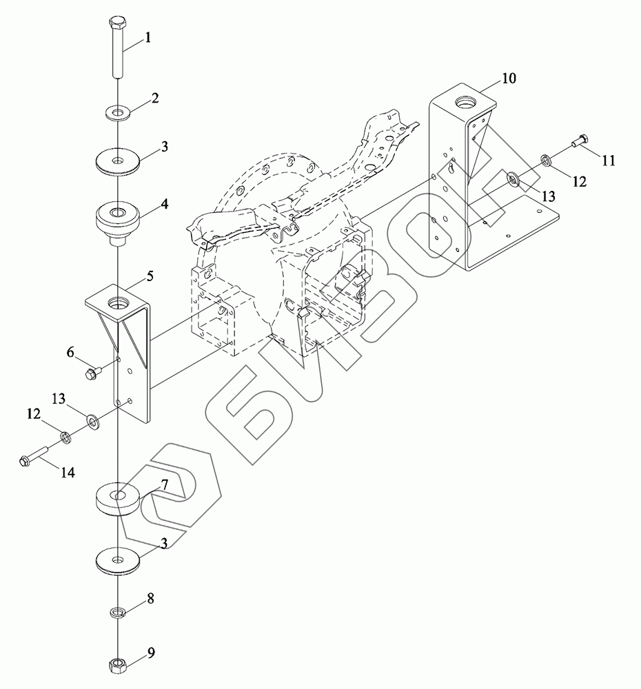 Графический каталог запасных частей к технике: LOVOL TD2SA1304-014K. Соединитель передний в сборе