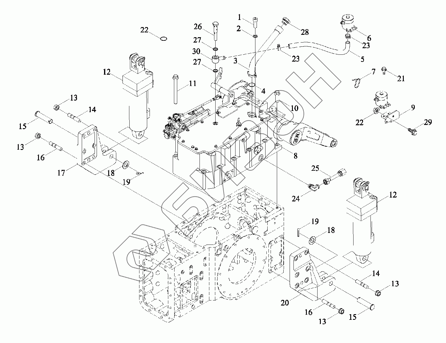 Графический каталог запасных частей к технике: LOVOL TD2SA1304-018K. Монтажный блок подъемника 1