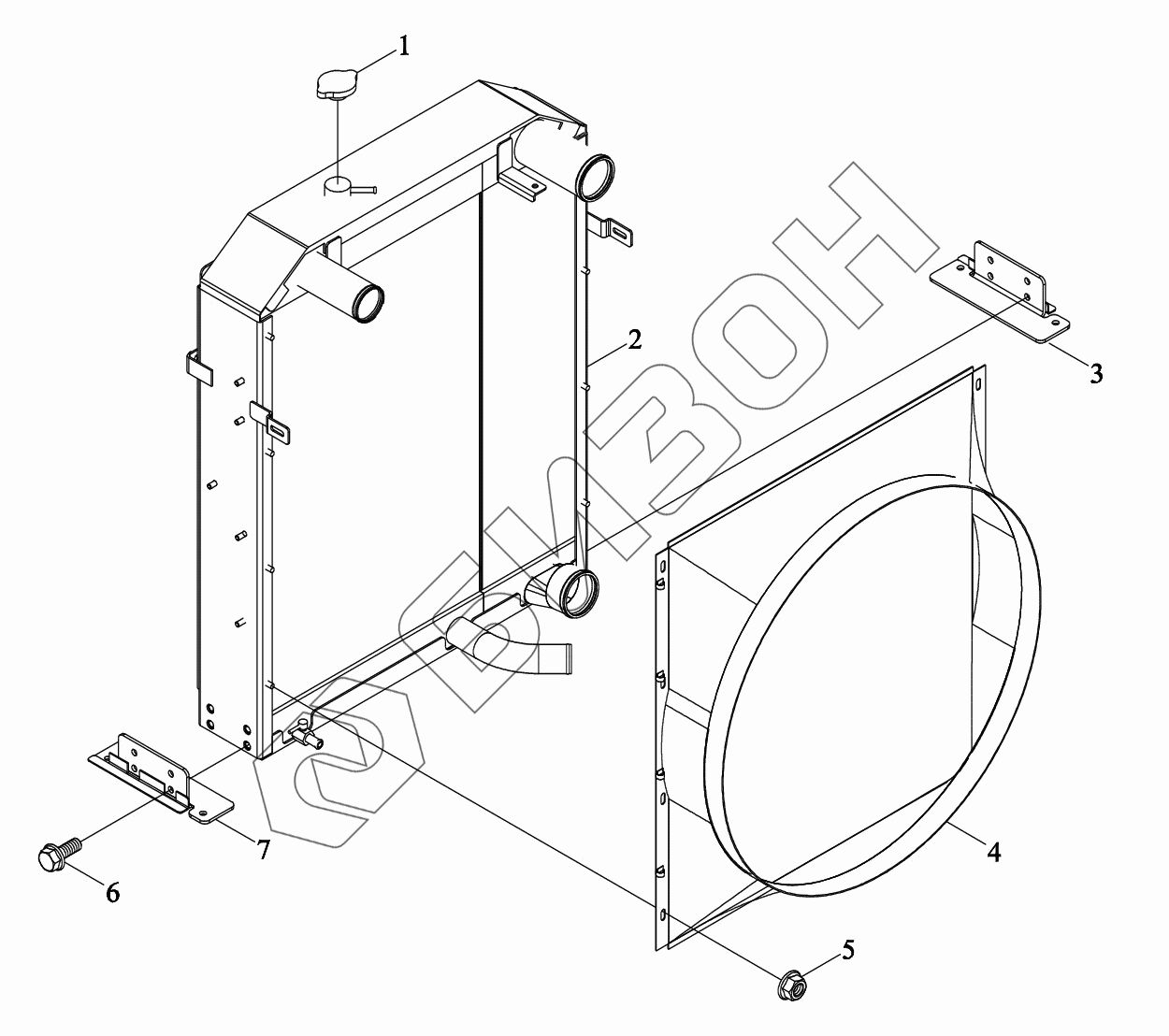 Графический каталог запасных частей к технике: LOVOL TD2SA1304-018K. Дефлектор радиатора