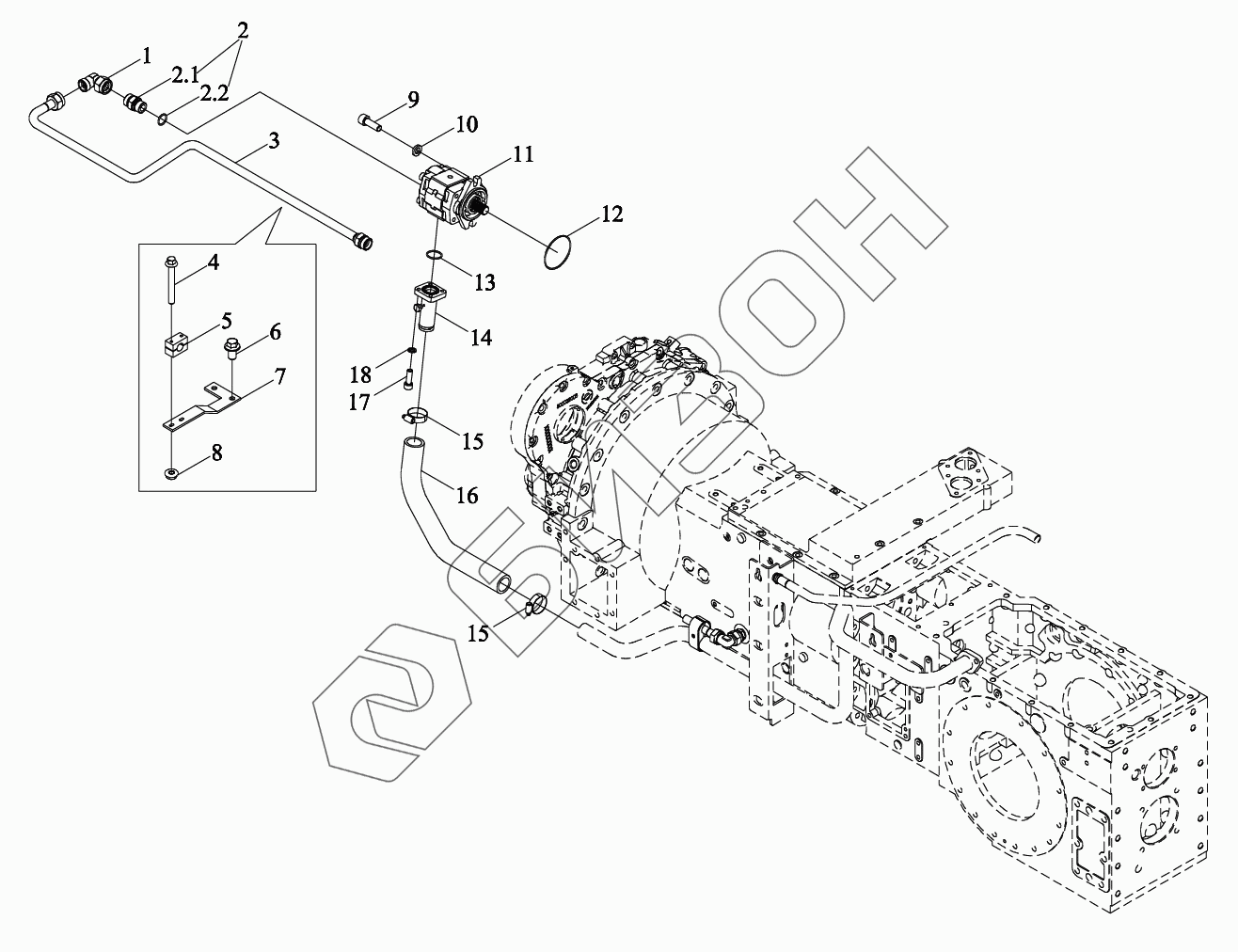 Графический каталог запасных частей к технике: LOVOL TD2SA1304-018K. Маслопровод масляного насоса
