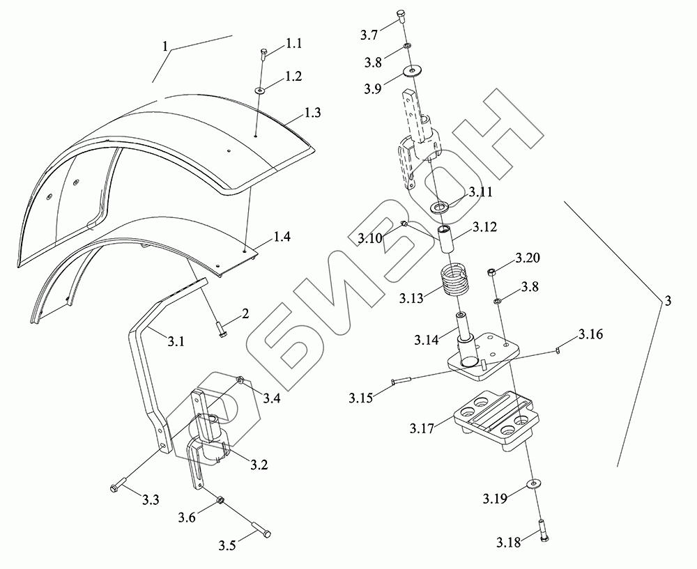 Графический каталог запасных частей к технике: LOVOL TD2SA1304-018K. Брызговик левый передний